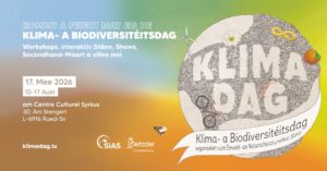 Wir sind dabei am 17. Mai 2026 bei der 4. Ausgabe des Klima- und Biodiversitätstages in Roodt/Syr im Kulturzentrum Syrkus! Für Groß und Klein, Naturfreunde oder einfach Neugierige — es erwartet euch ein Tag mit einem vielfältigen Programm: Secondhand – Corner, Workshops, Stände, Ausstellungen, Repair Café, Shows und Jungpflanzenmarkt.